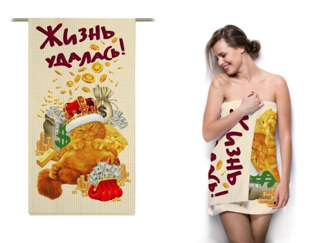 Полотенце вафельное пляжное 80*150 см (Денежный кот)