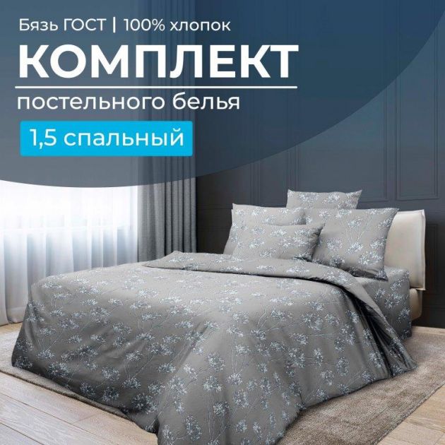 1,5-спальное постельное белье из бязи ГОСТ. Это очень плотная, лощёная ткань. Она имеет большой срок службы и проста в уходе. Качество рисунков, детализация и глубина тонов обеспечены современными техниками нанесения принтов на полотна.