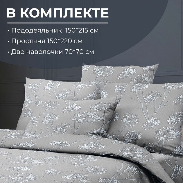 Комплектность: пододеяльник 1 шт., простыня 1 шт., наволочка 2 шт.