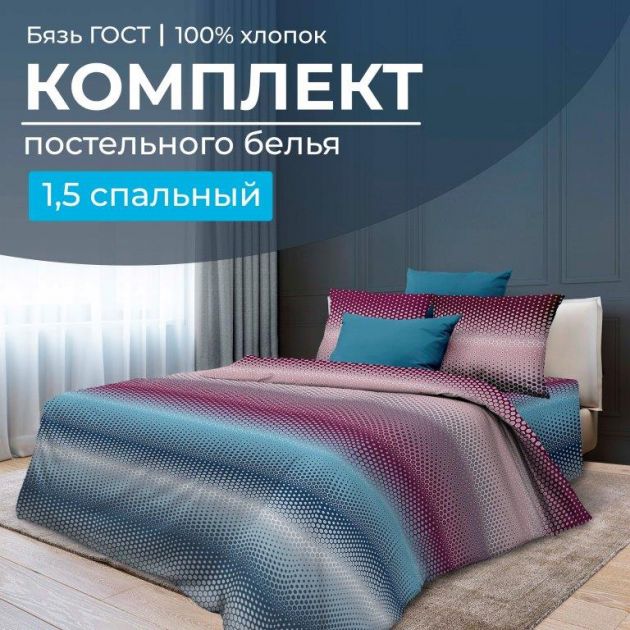 1,5-спальное постельное белье из бязи ГОСТ. Это очень плотная, лощёная ткань. Она имеет большой срок службы и проста в уходе. Качество рисунков, детализация и глубина тонов обеспечены современными техниками нанесения принтов на полотна.