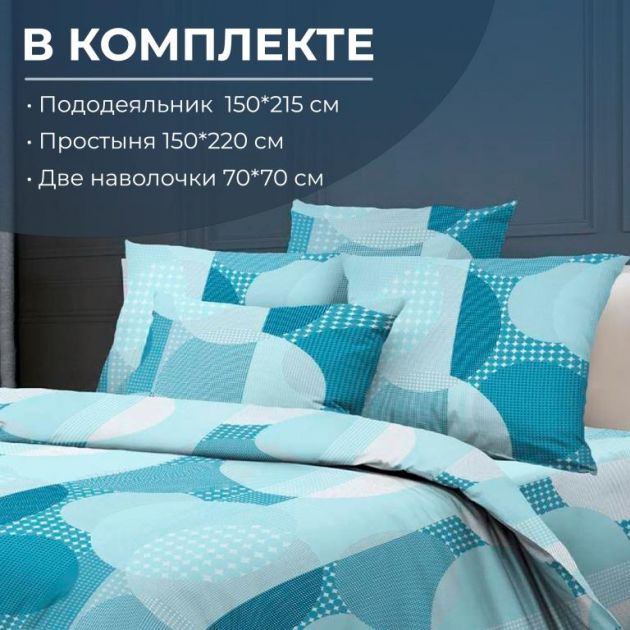 В комплекте: пододеяльник 1,5-спальный 150*215 см с прорезью в нижнем шве. Размер пододеяльника 150 * 215 см. Простыня 150 * 220 см. Две наволочки размером 70 * 70 см с глубоким клапаном (не менее 25 см).