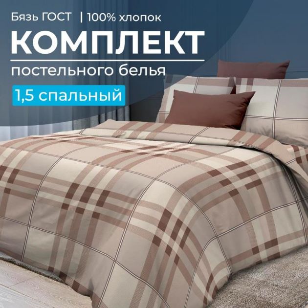 Комплект постельного белья 1,5-спальный, бязь ГОСТ (Лионель, бежевый, вид 1)