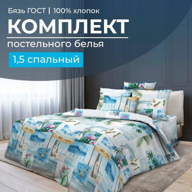 1,5-спальное постельное белье из бязи ГОСТ. Это очень плотная, лощёная ткань. Она имеет большой срок службы и проста в уходе. Качество рисунков, детализация и глубина тонов обеспечены современными техниками нанесения принтов на полотна.