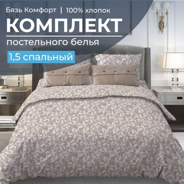 Комплект постельного белья 1,5-спальный, бязь "Комфорт"(220) (Вьюнок, бежевый)