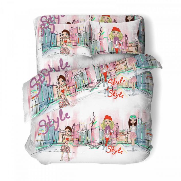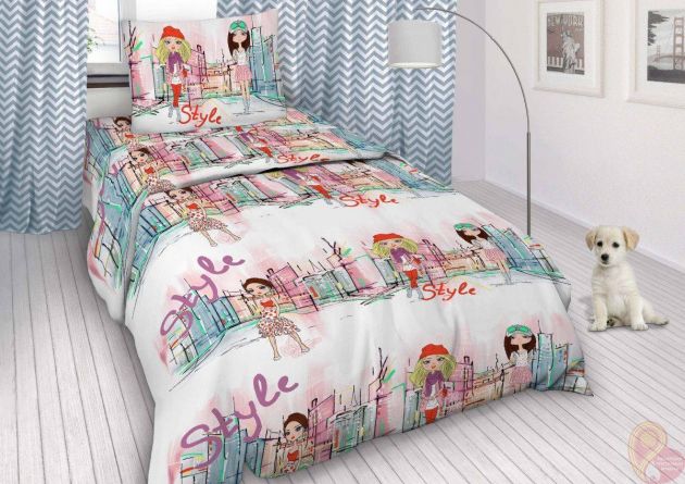Комплект постельного белья 1,5-спальный, бязь "Комфорт", детская расцветка (Мы- городские девченки)