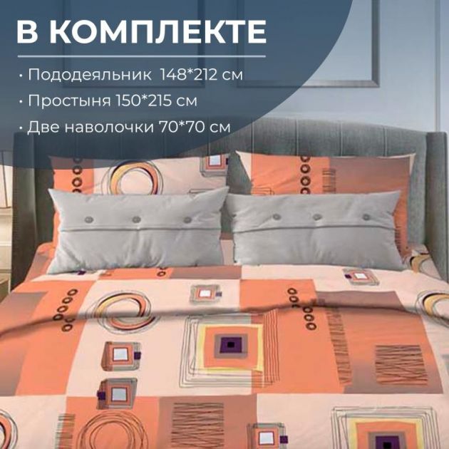 Комплект постельного белья 1,5-спальный, бязь "Комфорт" (Графика, оранжевый)