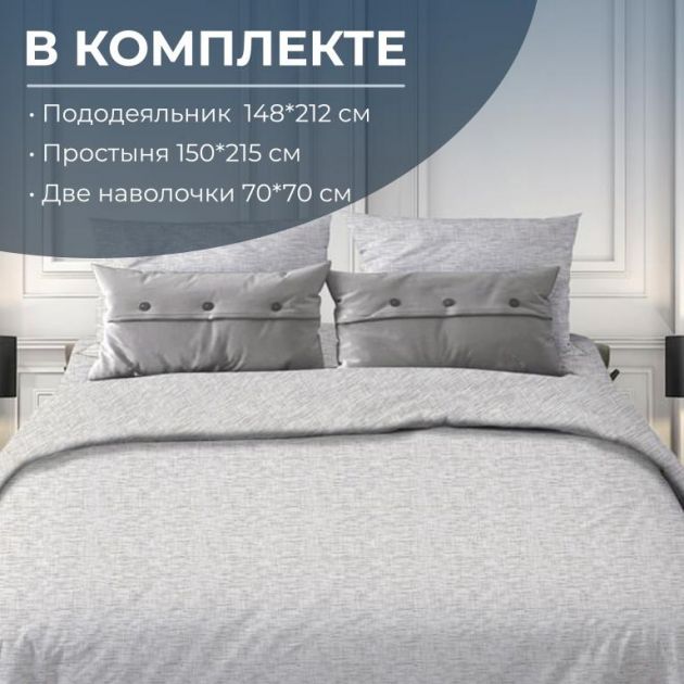 Комплектность: пододеяльник 1 шт., простыня 1 шт., наволочка 2 шт.