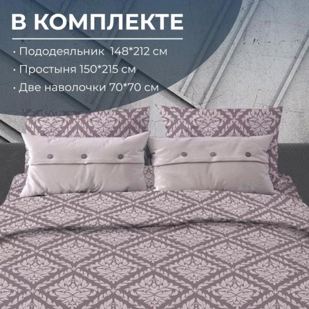 Комплектность: пододеяльник 1 шт., простыня 1 шт., наволочка 2 шт.