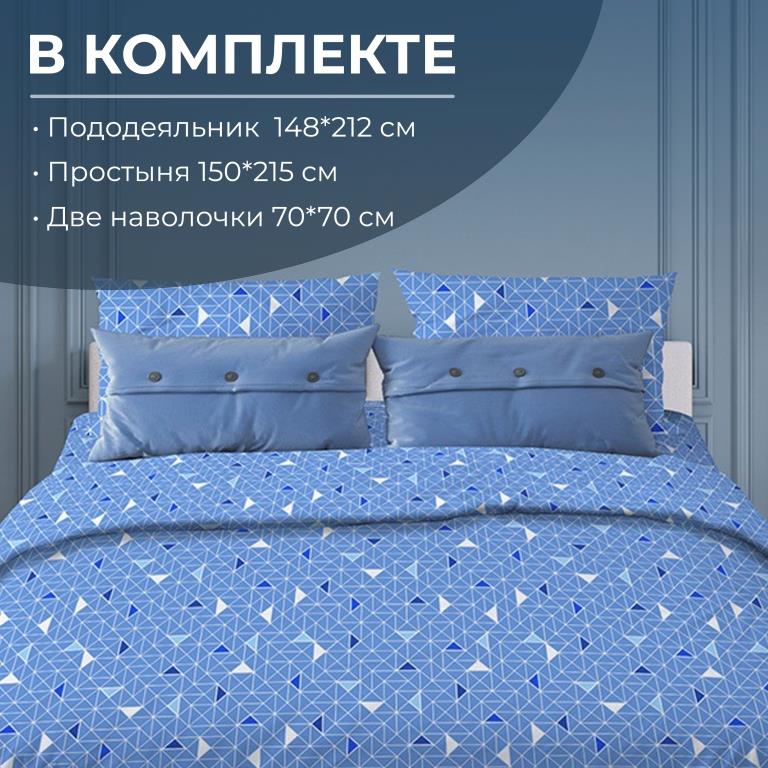 Комплект постельного белья 1,5-спальный, бязь "Комфорт" (Треугольники, светло-синий)
