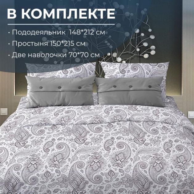 Комплектность: пододеяльник 1 шт., простыня 1 шт., наволочка 2 шт.