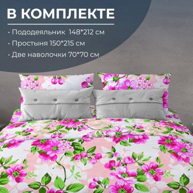 Комплектность: 1 пододеяльник, 1 простыня, 2 наволочки