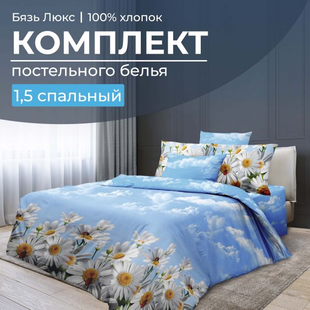 Комплект постельного белья 1,5-спальный, бязь "Люкс"(220) (Воздушные ромашки)