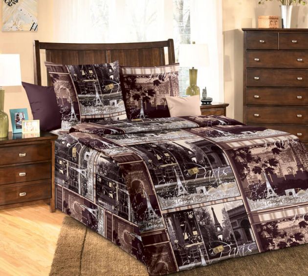 Комплект постельного белья 1,5-спальный, бязь "Люкс" (Парижские тайны, коричневый)