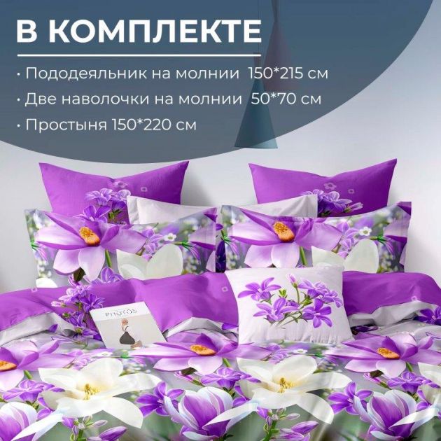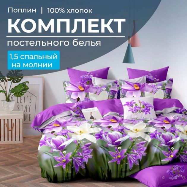 Вы хотите наслаждаться комфортом и уютом в своей спальне? Наш комплект 1,5 спального постельного белья на молнии из поплина - 100% хлопка, плотностью ткани 110 г/м2 идеально подойдет для этого! Комплект включает в себя: простынь размером 150x220 см, пододеяльник на молнии размером 150x215 см, две наволочки на молнии размером 50x70 см. При изготовлении постельного комплекта мы используем только высококачественный хлопок, который обеспечивает максимальный комфорт и прочность. Материал не только приятен на ощупь, но и легко стирается, сохраняет свою форму после многократных стирок, гипоаллергенный, износоустойчивый, рисунки на поплине смотрятся четко и ярко. Комплект постельного белья выполнен в привлекательном дизайне, который подойдет для любого интерьера спальни. Он создаст уютную и расслабляющую атмосферу в вашей комнате, чтобы вы могли наслаждаться своим сном каждую ночь. Не упустите возможность создать комфорт в своей спальне - сделайте заказ уже сегодня! Размерность комплекта