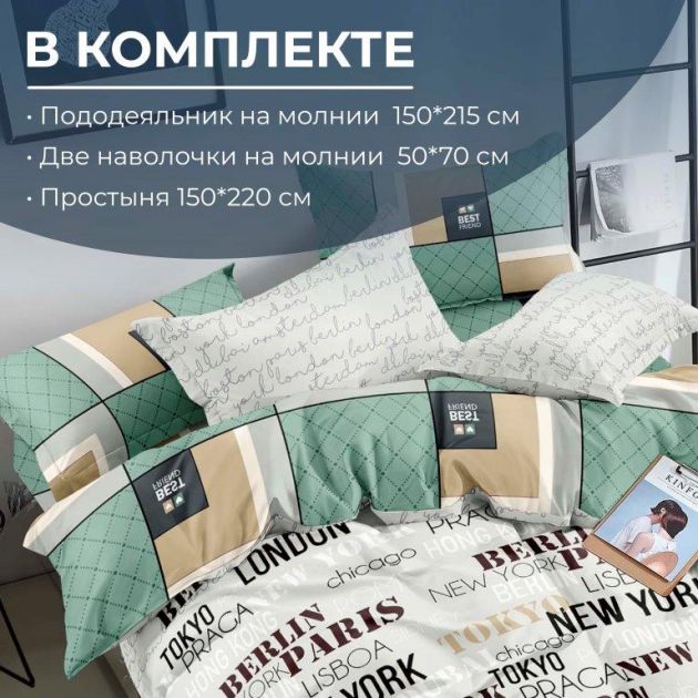 Вы хотите наслаждаться комфортом и уютом в своей спальне? Наш комплект 1,5 спального постельного белья из поплина - 100% хлопка на молнии идеально подойдет для этого! Комплект включает в себя: простынь размером 150x220 см, пододеяльник на молнии размером 150x215 см, две наволочки на молнии размером 50x70 см. При изготовлении постельного комплекта мы используем только высококачественный хлопок, который обеспечивает максимальный комфорт и прочность. Материал не только приятен на ощупь, но и легко стирается, сохраняет свою форму после многократных стирок, гипоаллергенный, износоустойчивый, рисунки на поплине смотрятся четко и ярко. Комплект постельного белья выполнен в привлекательном дизайне, который подойдет для любого интерьера спальни. Он создаст уютную и расслабляющую атмосферу в вашей комнате, чтобы вы могли наслаждаться своим сном каждую ночь. Не упустите возможность создать комфорт в своей спальне - сделайте заказ уже сегодня! Размерность комплекта
