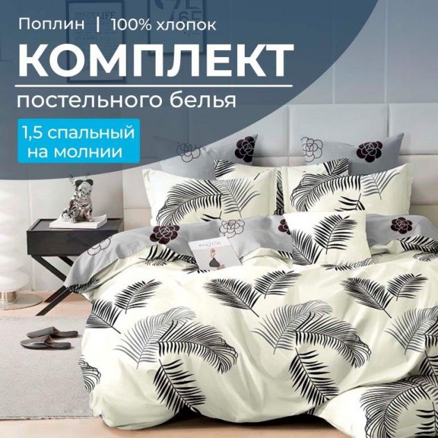 Вы хотите наслаждаться комфортом и уютом в своей спальне? Наш комплект 1,5 спального постельного белья на молнии из поплина - 100% хлопка, плотностью ткани 110 г/м2 идеально подойдет для этого! Комплект включает в себя: простынь размером 150x220 см, пододеяльник на молнии размером 150x215 см, две наволочки на молнии размером 50x70 см. При изготовлении постельного комплекта мы используем только высококачественный хлопок, который обеспечивает максимальный комфорт и прочность. Материал не только приятен на ощупь, но и легко стирается, сохраняет свою форму после многократных стирок, гипоаллергенный, износоустойчивый, рисунки на поплине смотрятся четко и ярко. Комплект постельного белья выполнен в привлекательном дизайне, который подойдет для любого интерьера спальни. Он создаст уютную и расслабляющую атмосферу в вашей комнате, чтобы вы могли наслаждаться своим сном каждую ночь. Не упустите возможность создать комфорт в своей спальне - сделайте заказ уже сегодня! Размерность комплекта