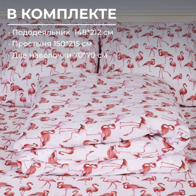 Комплект постельного белья 1,5-спальный, перкаль, детская расцветка (Фламинго)