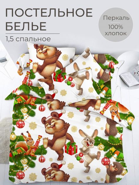 Комплект постельного белья 1,5-спальный, перкаль, детская расцветка (Карнавал)