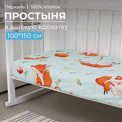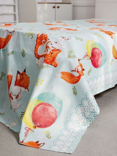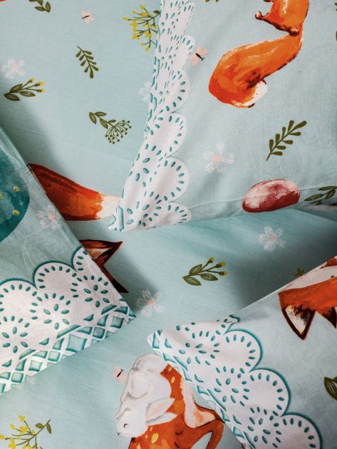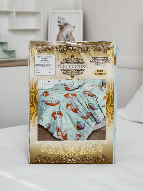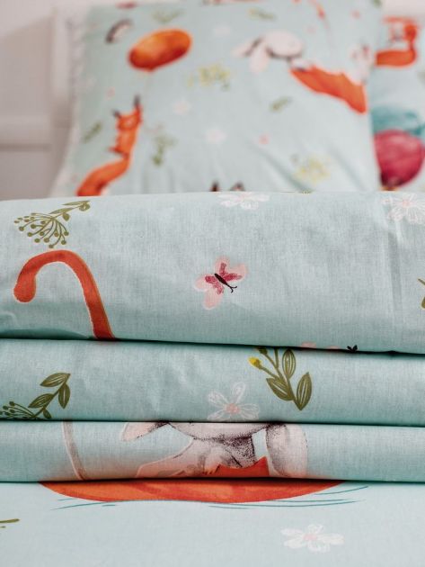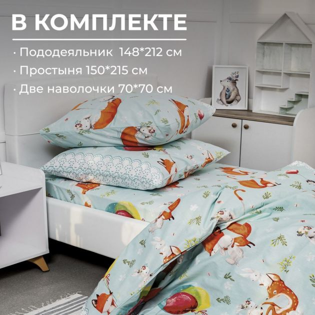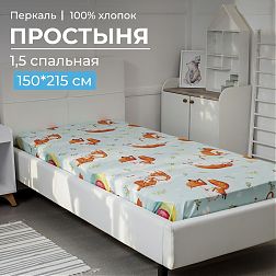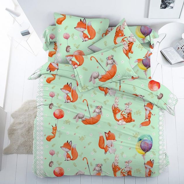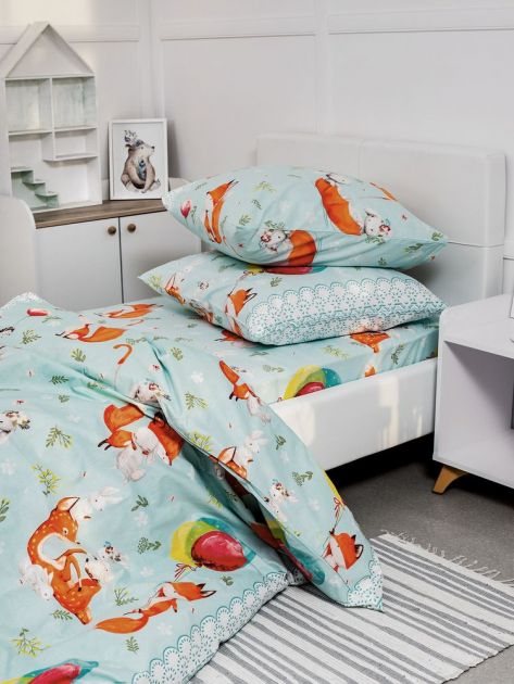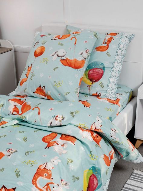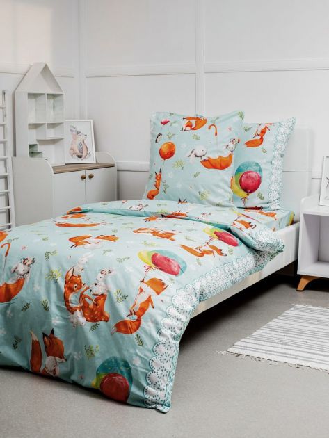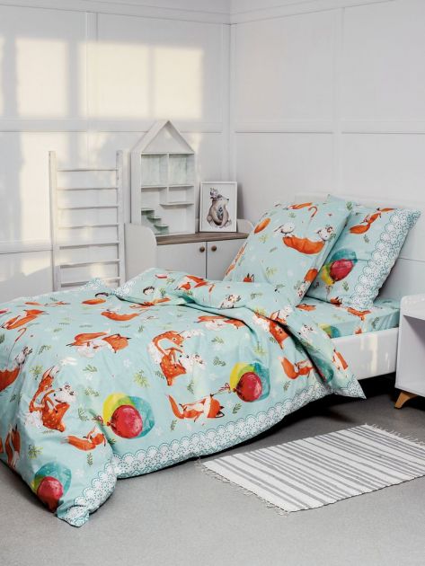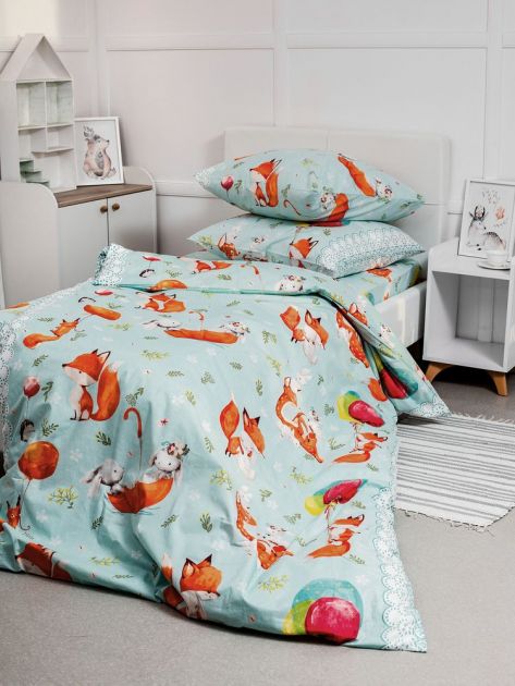 Комплект постельного белья 1,5-спальный, перкаль, детская расцветка (Лисята)