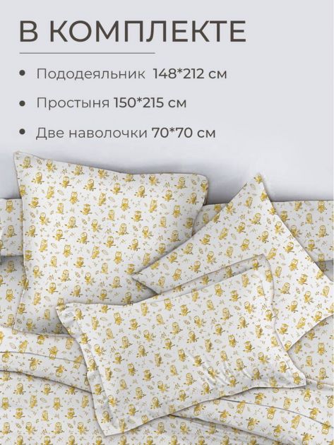 пододеяльник 1 шт., простыня 1 шт., наволочка 2 шт.