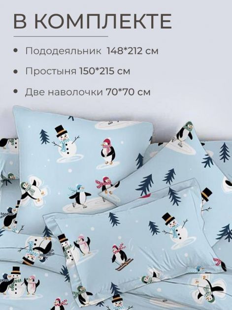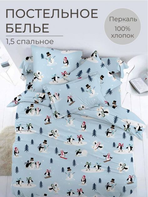 Комплект постельного белья 1,5-спальный, перкаль, детская расцветка (Пингвинята)