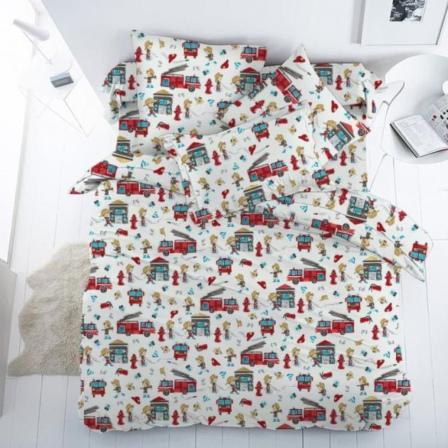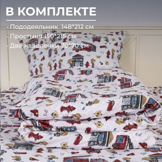 Комплект постельного белья 1,5-спальный, перкаль, детская расцветка (Пожарники)