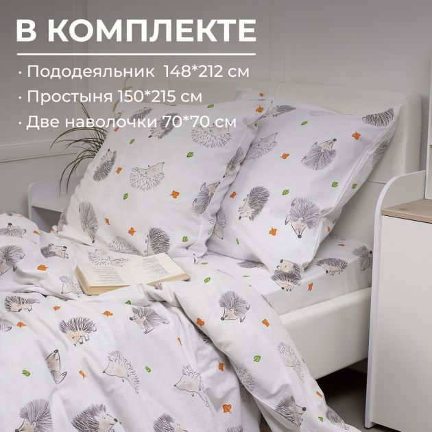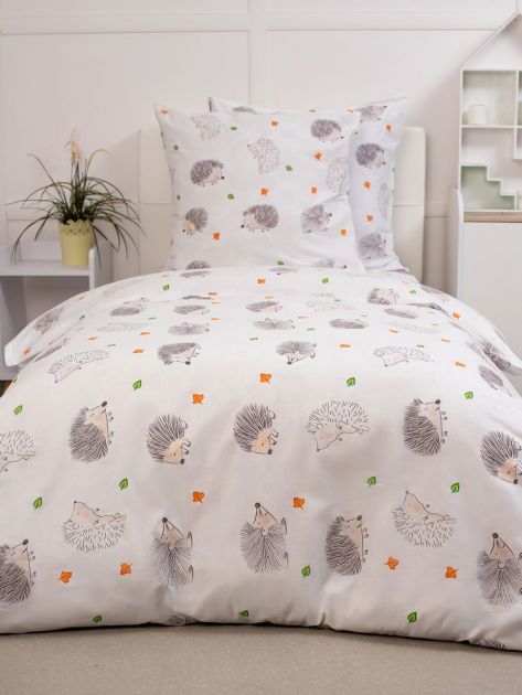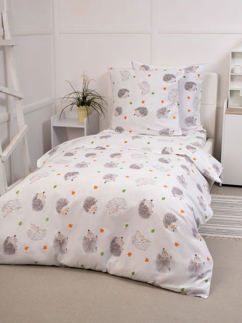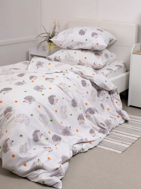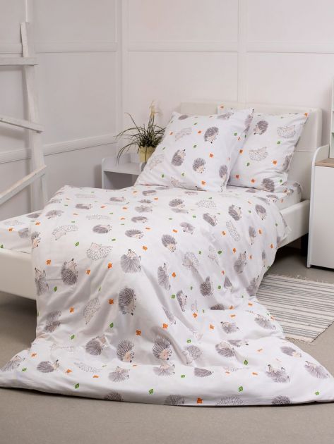Комплект постельного белья 1,5-спальный, перкаль, детская расцветка (Ёжики)
