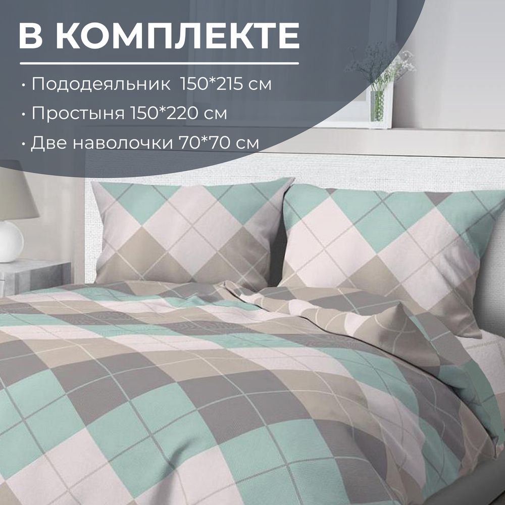 Комплект постельного белья 1,5-спальный, перкаль (Клетка Паддингтон, мятная)