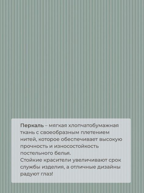 Представляем вашему вниманию изысканный комплект постельного белья 1,5 спальное от ИвановоТекстиль, который станет идеальным выбором для вашего дома. Этот комплект постельного белья 1,5 выполнен из перкаля — плотной, тонкой и гладкой ткани из 100% хлопка высокого качества. Перкаль отличается своей мягкостью и приятными тактильными ощущениями, обеспечивая вам сладкий сон и комфортный отдых. Комплект постельного белья включает в себя простынь размером 150x220 см, пододеяльник размером 150x215 см с входом в нижнем шве, и две наволочки размером 70x70 см с глубиной клапана не менее 25 см. Постельное белье 1,5 спальное из перкаля плотностью 110 г/м2 не требует особого ухода: его можно стирать при температуре 40°С, оно не растягивается и прекрасно держит форму. Ткань хорошо впитывает влагу, пропускает воздух и не липнет к телу, что делает ваш сон еще более комфортным. Рисунки на перкале получаются яркими и четкими, добавляя эстетическую привлекательность вашему спальному месту. Ивановотекстиль постельное белье производится в Ивановской области и имеет сертификацию качества "ГОСТ 31307-2005", а также зарегистрировано в государственной системе маркировки "Честный знак", что подтверждает его высокое качество и надежность. Выбирая белье постельное 1,5 спальное от ИвановоТекстиль, вы получаете не только стильное и практичное решение для вашей спальни, но и уверенность в качестве и долговечности изделия. Позвольте себе насладиться роскошью и уютом с нашим комплектом белья постельного, который станет вашим надежным спутником в мире сладких снов. Размерность комплекта