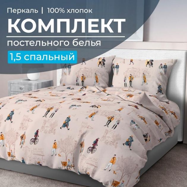 Комплект постельного белья 1,5-спальный, перкаль (Осенний город)