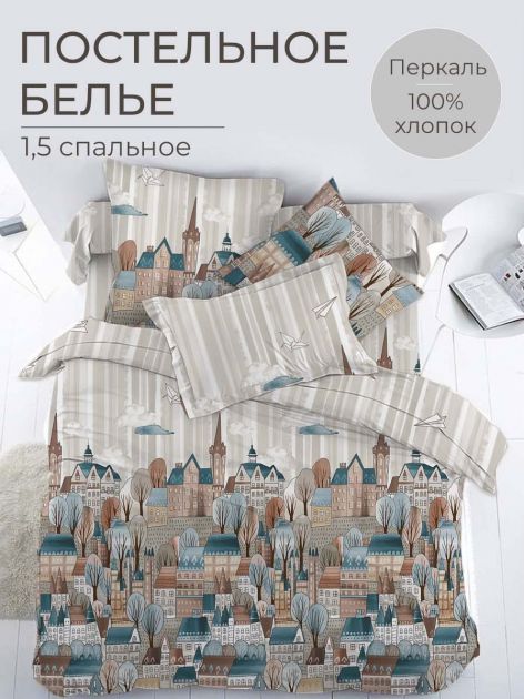 Комплект постельного белья 1,5-спальный, перкаль (Таун)