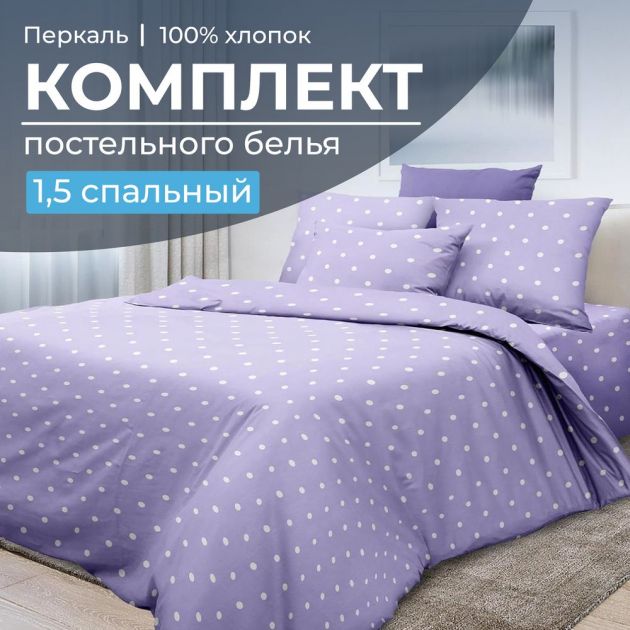 Комплект постельного белья 1,5-спальный, перкаль (Вивьен лилак)