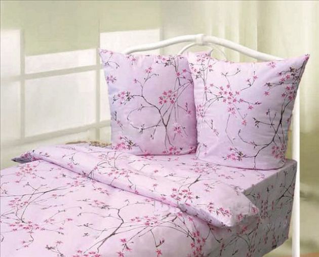 Комплект постельного белья 1,5-спальный, с вырезом "ромб", бязь Шуйская ГОСТ (Сакура, розовый)