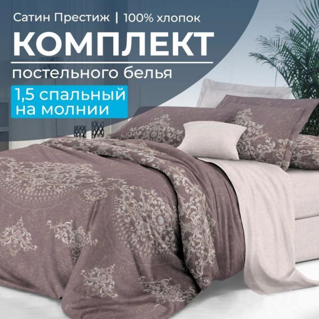 1,5-спальное постельное белье из сатина "Престиж" очень комфортно благодаря своему натуральному составу. Кроме этого, оно удобно в быту, так как не требует глажки – выстиранный и аккуратно высушенный сатин достаточно разгладить руками.