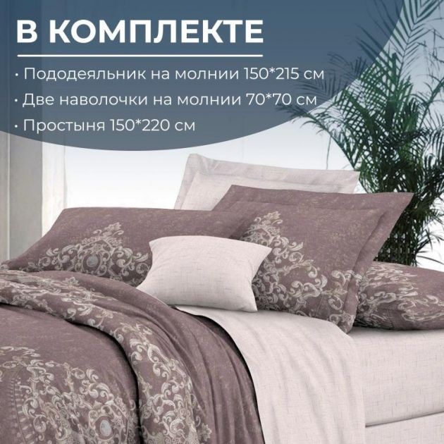 Размеры: пододеяльник 150*215 см, простыня 150*220 см, две наволочки 70*70 см Размерность комплекта
