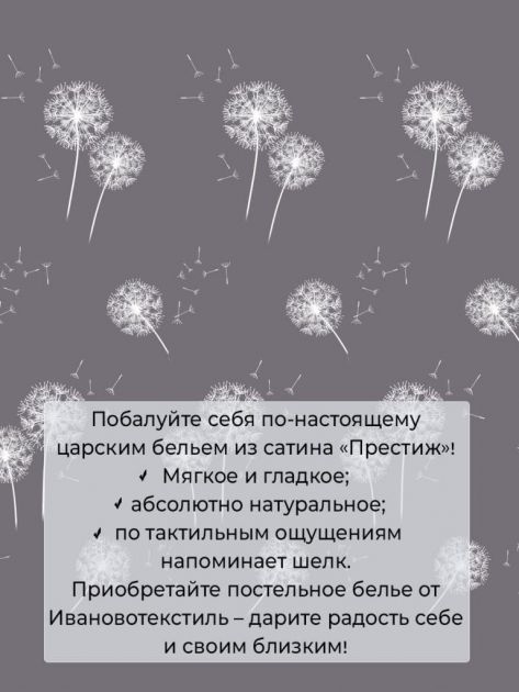 1,5-спальное постельное белье из сатина "Престиж" очень комфортно благодаря своему натуральному составу. Кроме этого, оно удобно в быту, так как не требует глажки – выстиранный и аккуратно высушенный сатин достаточно разгладить руками.