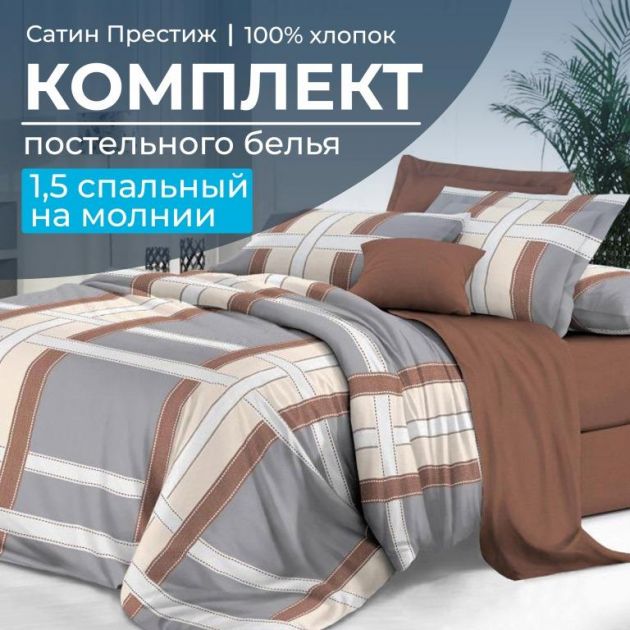 Комплект постельного белья 1,5-спальный, сатин "Престиж" (Этос)