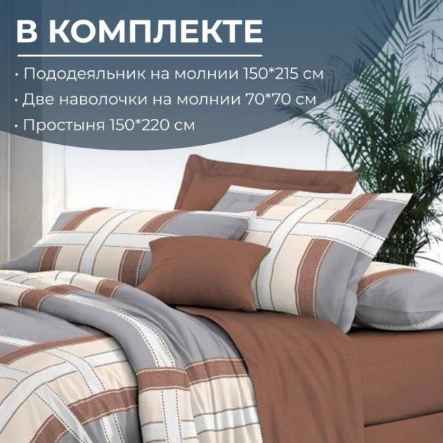 Размеры: пододеяльник 150*215 см, простыня 150*220 см, две наволочки 70*70 см Размерность комплекта