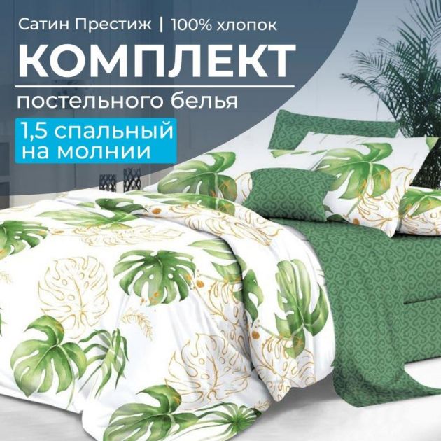 1,5-спальное постельное белье из сатина "Престиж" очень комфортно благодаря своему натуральному составу. Кроме этого, оно удобно в быту, так как не требует глажки – выстиранный и аккуратно высушенный сатин достаточно разгладить руками.