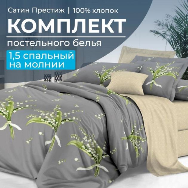 Комплект постельного белья 1,5-спальный, сатин "Престиж" (Ландыш)