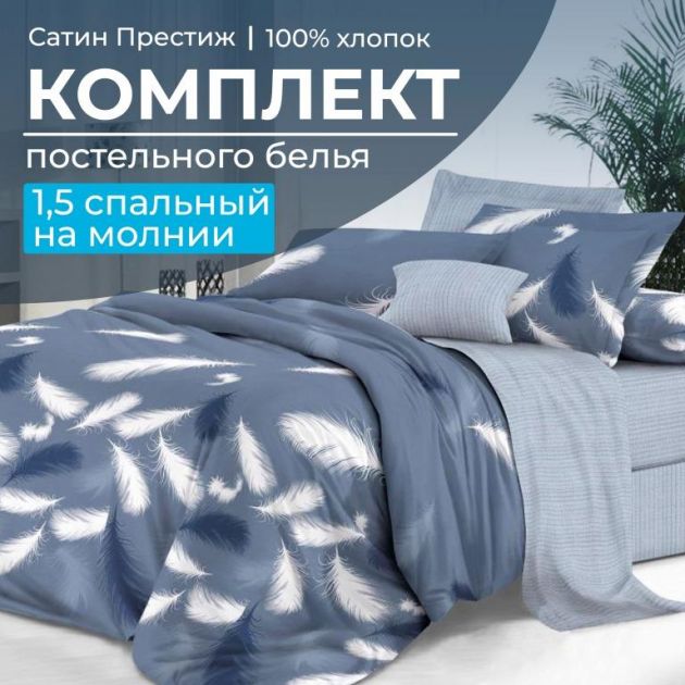 Комплект постельного белья 1,5-спальный, сатин "Престиж" (Плюмаж)