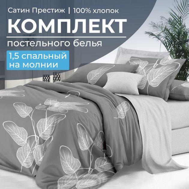 Подарите себе ощущение комфортного сна с нашим 1,5-спальным комплектом постельного белья из сатина "Престиж" плотностью ткани 115 г/м2. В комплекте: пододеяльник размером 150*215 см, который оснащен удобной потайной застежкой на молнии, простыня 150*220 см, две наволочки 70*70 см на молнии. Сатин представляет собой гладкое и блестящее полотно, похожее на шёлк, однако в составе ткани из сатина 100 % хлопок. Постельное белье из этой ткани надежное, плотное, износостойкое, гипоаллергенное, мало сминаемое, поэтому оно очень удобно в быту. Комплекты постельного белья из сатина «Престиж» - это выбор людей, которые ценят комфорт и выбирают качество. Размерность комплекта