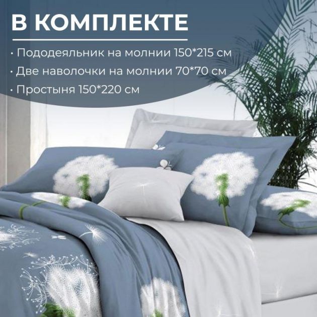 Размеры: пододеяльник 150*215 см, простыня 150*220 см, две наволочки 70*70 см Размерность комплекта