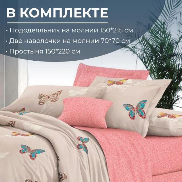 Размеры: пододеяльник 150*215 см, простыня 150*220 см, две наволочки 70*70 см Размерность комплекта