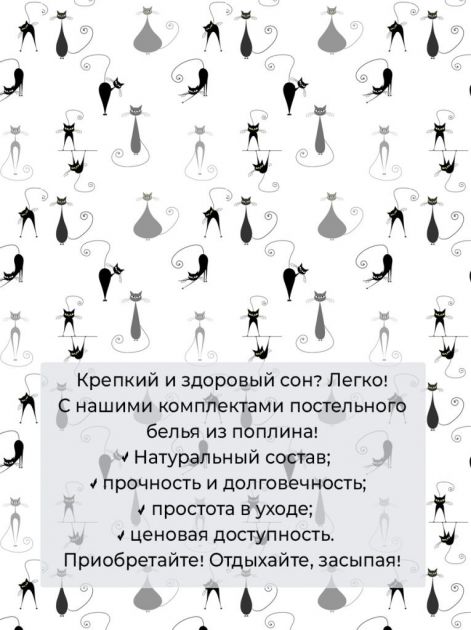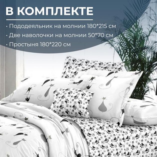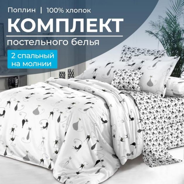 Комплект постельного белья 2-спальный, на молнии, поплин (Кошечка)