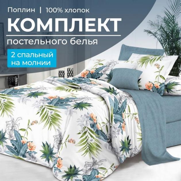 Комплект постельного белья 2-спальный, на молнии, поплин (Марлен)