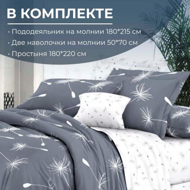 Комплектность: 1 пододеяльник, 1 простыня, 2 наволочки