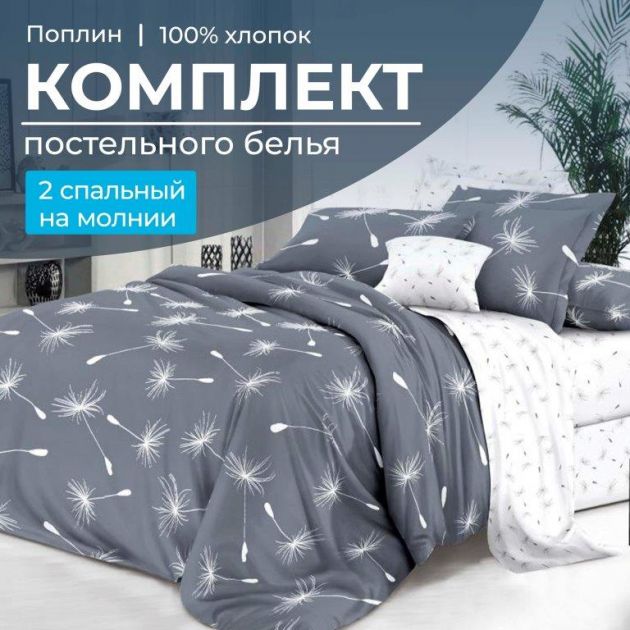 Комплект постельного белья 2-спальный, на молнии, поплин (Пушинка)