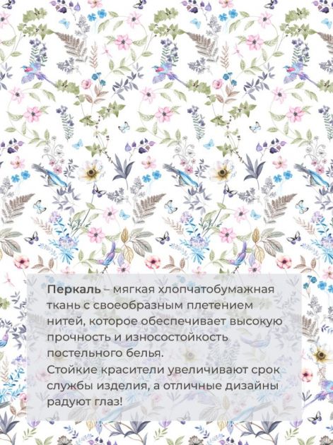 Комплект постельного белья из перкаля плотность ткани 110 г/м2 включает в себя: простынь размером 180 * 220 см, пододеяльник размером 180 * 215 см (вход в пододеяльник выполнен в нижнем шве), наволочки размером 70x70 см две штуки (глубина клапана не менее 25 см). Перкаль - плотная, тонкая, гладкая и очень приятная по тактильным ощущениям ткань из 100% хлопка высокого качества, которая не требует особого ухода, стирается при температуре 40°С, не растягивается и прекрасно держит форму, хорошо впитывает влагу, пропускает воздух и не липнет к телу. Рисунки на такой ткани получаются ярким и четким. Сон на таком постельном белье будет сладким, а отдых - комфортным! Наши изделия произведены в Ивановской области, имеют сертификацию качества "ГОСТ 31307-2005", а также зарегистрированы в государственной системе маркировки "Честный знак". Размерность комплекта