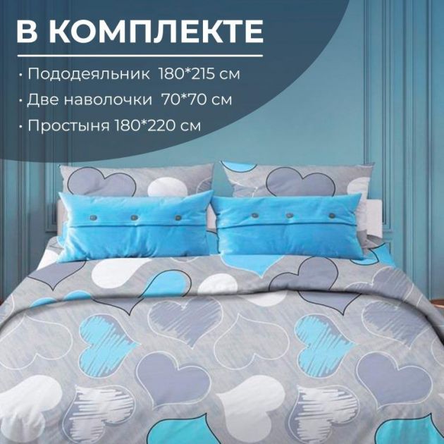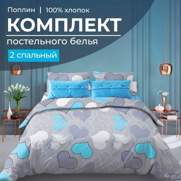 Комплект постельного белья 2-спальный, поплин (Романтика, голубой)